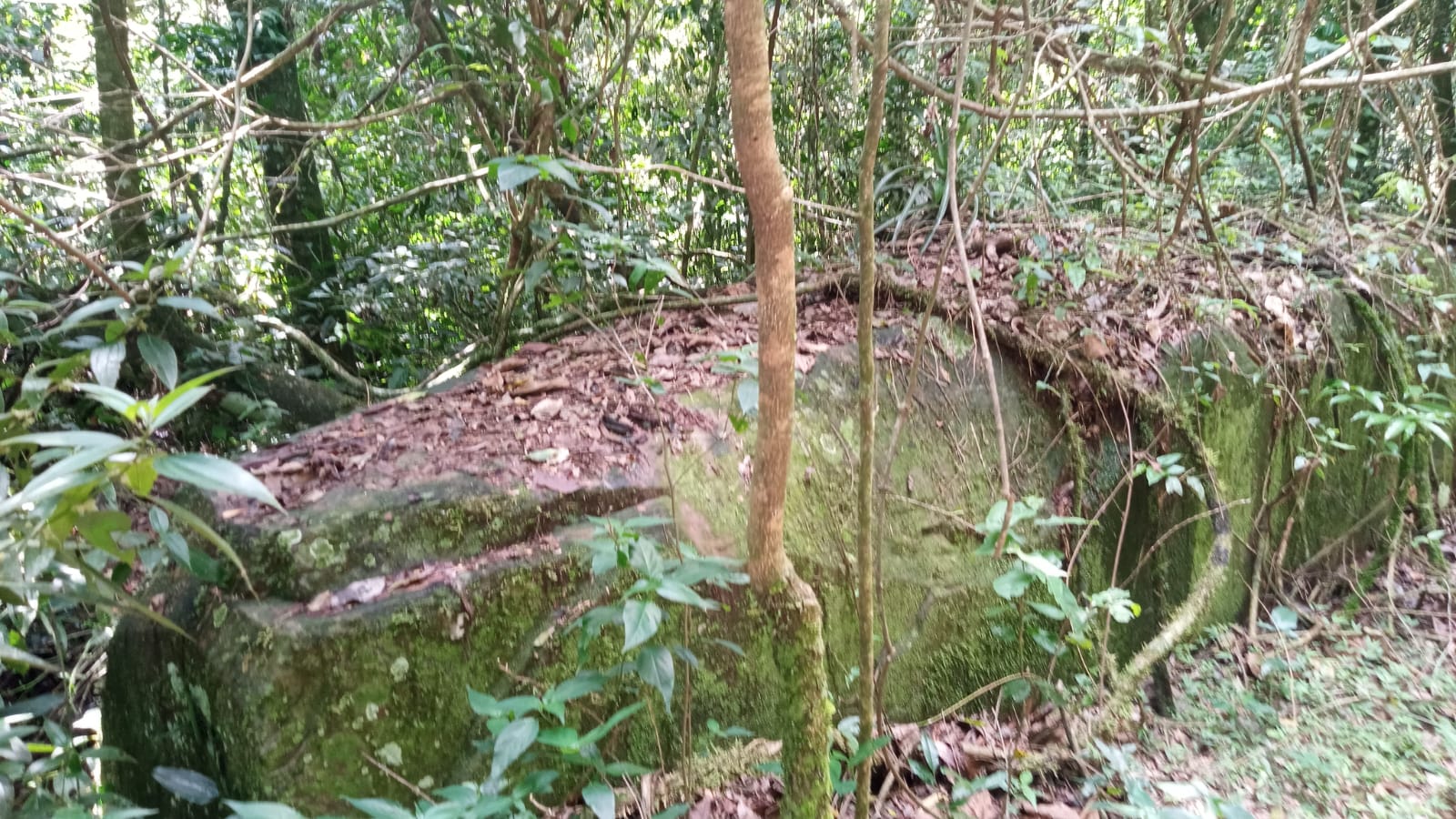 RUINAS II. Allí están los vestigios de esa construcción, enverdecida por el musgo asentado en el canto de las piedras. Una escalinata conduce a una pieza donde, en el revoque carcomido de la pared, hay grafitis grabados con metal por visitantes ansiosos de dejar la marca de su paso por el lugar. Tienen distintas fechas: el más antiguo es del año 1976 y el más reciente del 2021. Otro es bastante particular y corresponde a una pareja de esposos o hermanos, Mariel y Leandro Wiesmann, que fueron acompañados por un tal Julián Gauna, tal el registro allí grabado. Por supuesto, no faltan las esvásticas en honor a los combatientes nazis, pero encima de tales inscripciones laudatorias, y como advertencia a cualquier intento de resurrección, otra inscripción advierte en letras mayúsculas: A DONDE VAYAN LOS IREMOS A BUSCAR.